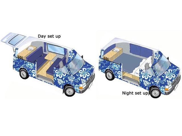 Travel in style and comfort with these funky design campervan uniquely hand painted by top local artists.
